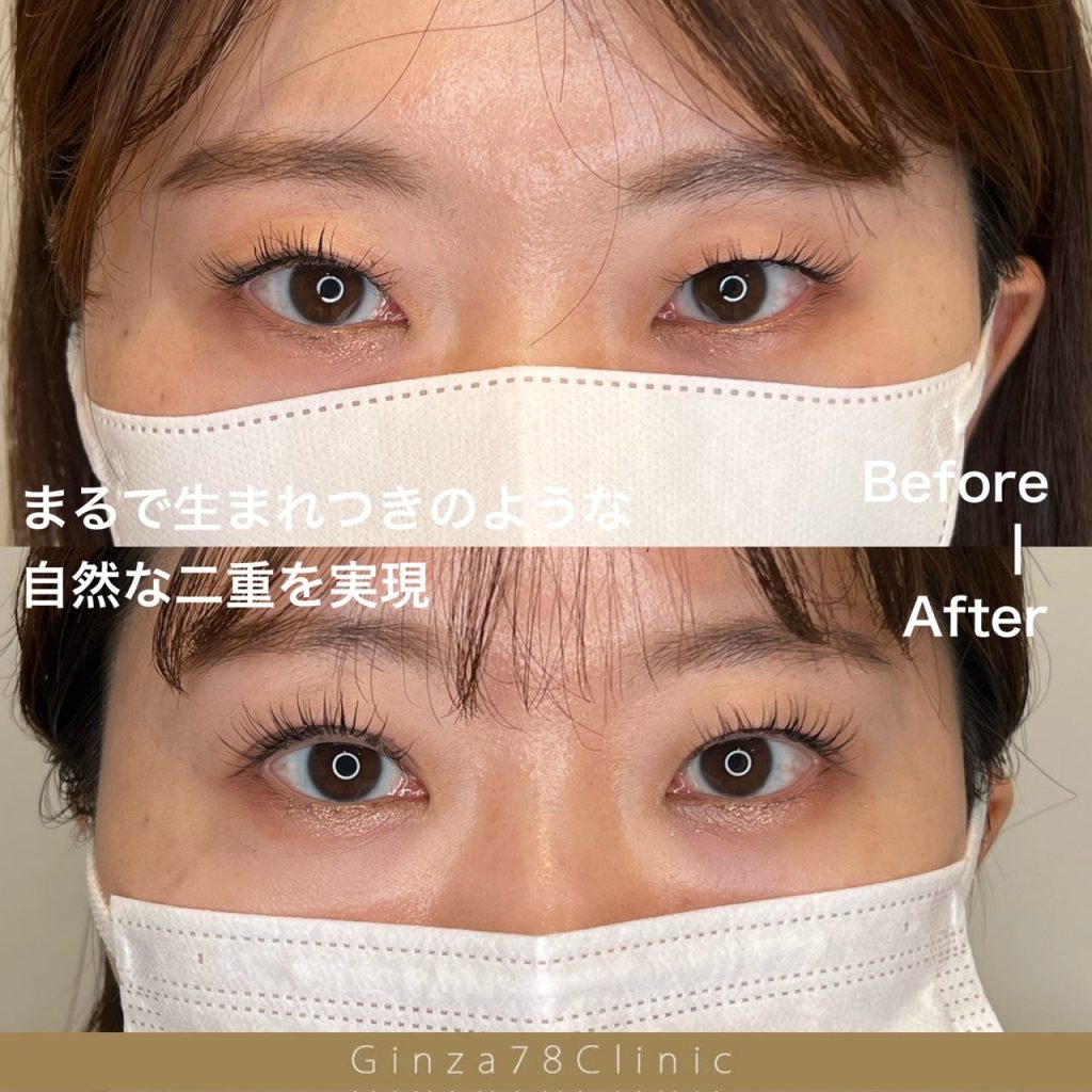 二重埋没法・自然癒着法(78ロック法)は、まぶたを糸で留めて二重を作る施術です。