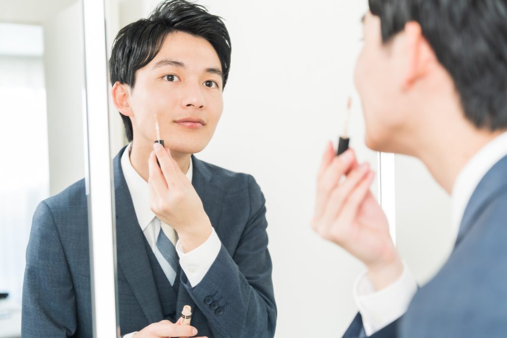 赤クマには赤みを抑えるグリーン系が向いており、薄い膜を重ねるように少量ずつのせると厚塗り感を避けながら均一に整えられます。